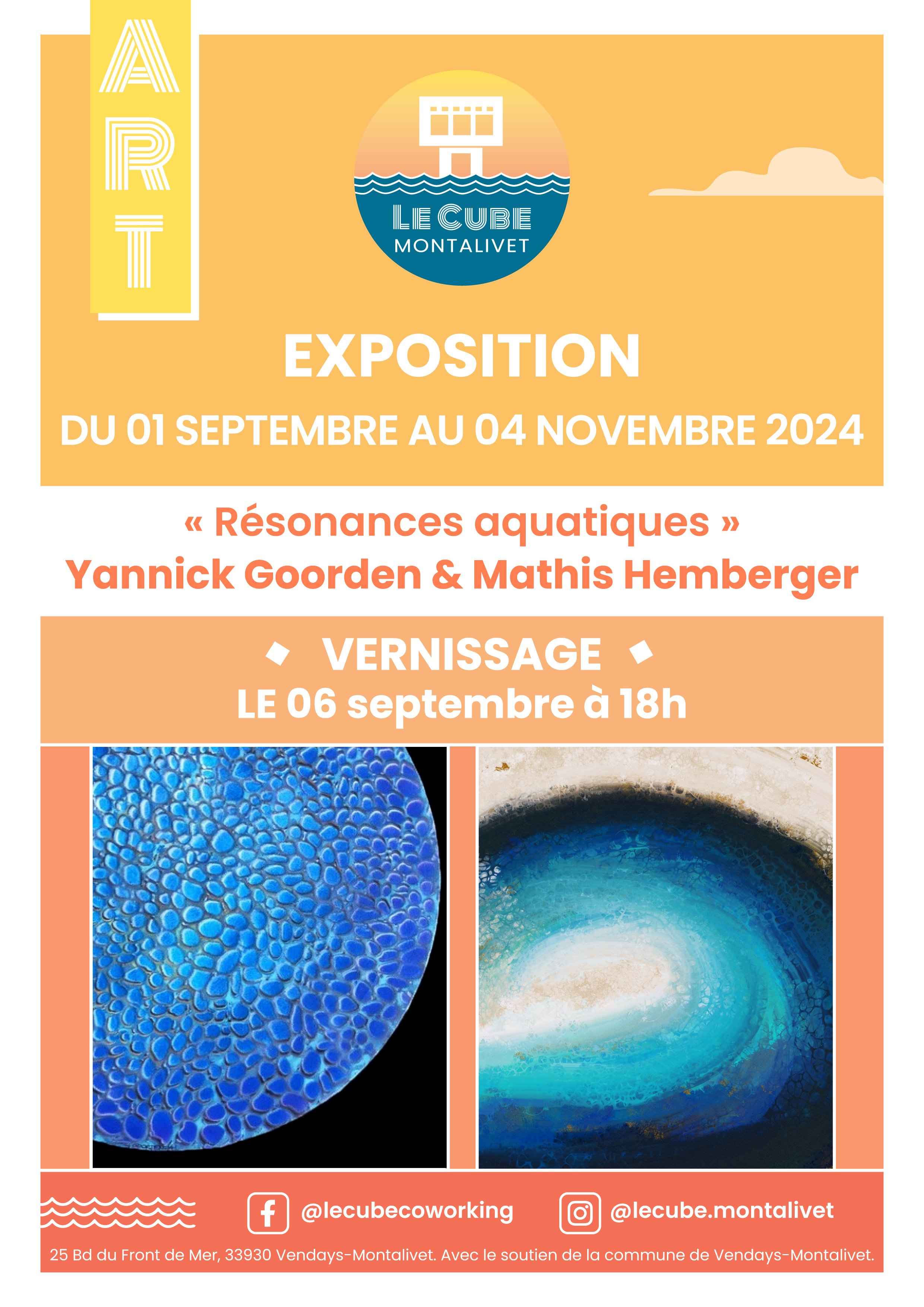 Mathis’ contribution to “Résonances Aquatiques” is an evocative exploration of vast bodies of water and its surrounding environment—oceans, lakes, the estuary and beaches—, captured through the lenses of photography, handmade printmaking, and digital art. The artworks, predominantly in either vibrant blues or stark black-and-whites illustrate the emotional depth of oceans and lakes, from somber tranquility to dramatic intensity.