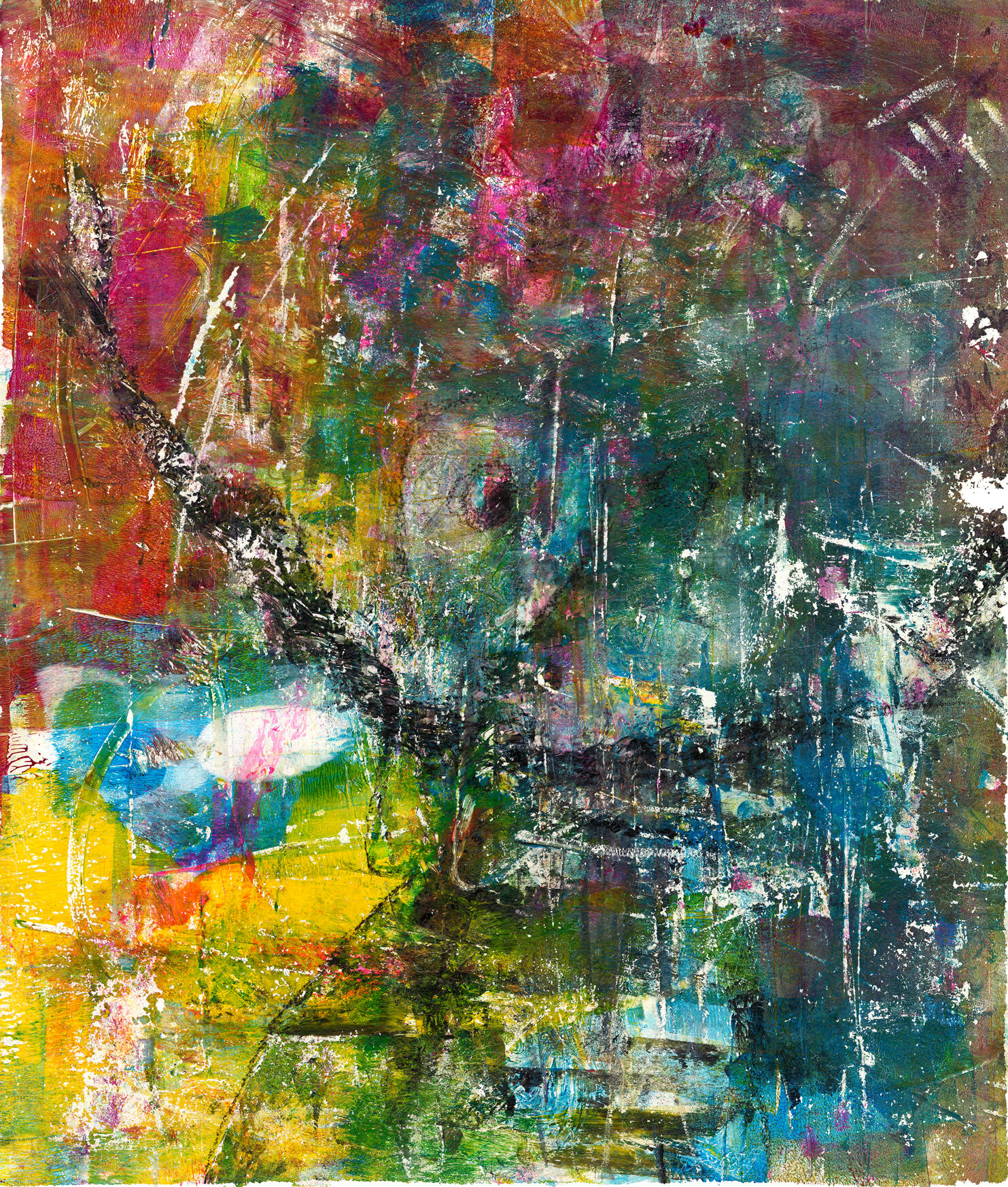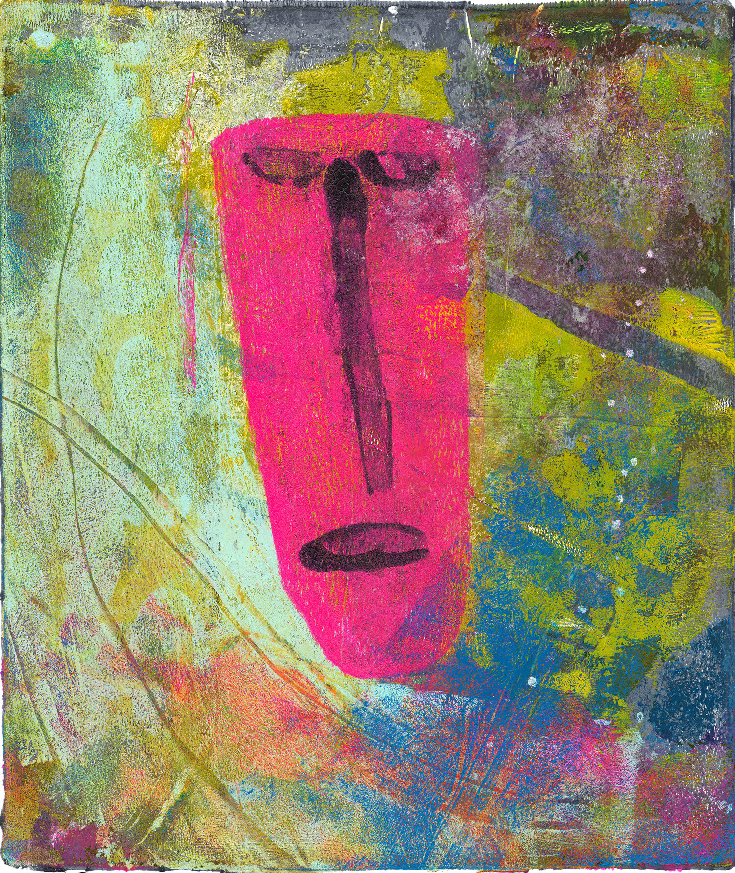 Monotype with Acrylic & Mixed Media on Fine Art Aquarelle Paper